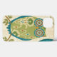© Veronique Charron/Apple selvagem.  Uma imagem decorativa de uma coruja e uns padrões e um design circulares. O fundo é um teste padrão floral colorido tan.
