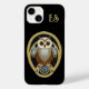 Este magnífico motif de coruja foi criado em um olhar estilizado da era Art Deco com detalhes ricos de linhas de ouro, gemas e efeitos sobre a conta. Pode adicionar as suas próprias iniciais (2 ou 3, conforme preferir) ou apenas um monograma de letras solteiros. O pássaro se senta sobre um fundo preto que faz seu ornamentado metálico olhar detalhado se destacar.