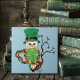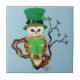 Coruja fofa vestindo um chapéu verde de leprechaun com dois trevos