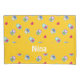 Adicione o seu nome nesta coruja com corações no design de padrão de fundo de cor laranja.