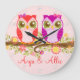 Corujas Rosa e Roxas - Relógio de Parede Personali