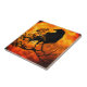 Ilustração do Dia das Bruxas com lua laranja no fundo.