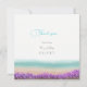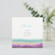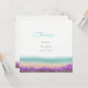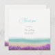 Cartões de agradecimentos de casamento com o Azure Brilhante e a paisagem da natureza magenta cor-de-rosa com costa e montanhas florescentes. A paisagem floral da Sunny Nature. Silhuetas de montanhas, costa marítima e flores rosa-claro e roxas. Pintar aquarela Cartões de agradecimentos de Casamento. Costa do Azure na Coleção Bloom.