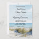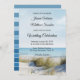 Convite de casamento costeiro com uma imagem das dunas com vista ao oceano. Este convite tem uma placa RSVP correspondente. Bonito para um casamento de praia ou destino.