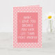 Cartão de saudação bonito com uma citação engraçada para o amor de sua vida, marido ou esposa, menino ou namorada, ou mesmo sua mãe ou pai, em um fundo de bolinhas roxo e branco violeta. Com a opção de personalizar com nome, palavra ou texto (limitado) de sua escolha. Deixe que aqueles com senso de humor saibam que você os ama até a lua e de volta com este sarcástico e humorístico 'EU TE AMO PORQUE VOCÊ SUCA MENOS DO QUE A MAIORIA DAS OUTRAS citações PESSOAS.