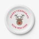 Costumado Rudolph, as renas... os pratos das festas de Natal Feliz para os Feriados. Modelo de tipografia divertida com desenho animado. Design para festas de janto, aniversário de criança, reunião de escritório, reunião de família e muito mais. Disponível em tamanho pequeno e grande extra grande. Adicione suas saudações personalizadas, desejos de Natal e nome ou sobrenome da família. decoração, decorações e suprimentos para a época das Férias. Chapas de papel descartáveis para crianças e adultos.