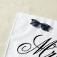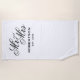 Costume a toalha de praia do Sr. & Sra. para casal recém-casados. Ideia elegante do dia do casamento para recém casados e luas de mel. Presente personalizado com sobrenome de noiva e noivo mais data de casamento. Belo design de tipografia. Design de modelo branco e preto para casais casados. Crie toalhas para novo marido e esposa. Crie a dele e dela por ele e ela. Acessórios divertidos para praia tropical ou piscina. Cor branca ou personalizada.