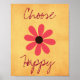 Citação Motivacional Escolha Poster Feliz. O fundo de creme de laranja com a flor retrorinspirada e as palavras inspiradoras e motivacionais, "Choose Happy" — é tudo sobre a atitude na vida!