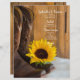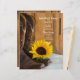 Personalize o Quaint Country Sunflower Western Wedding Menu com os detalhes da refeição que você servirá no seu estilo de fazenda ou no tema rancho de casamento, almoço de chá de panela ou recepção de casamento, adicionando a salada ou primeiro curso, entrada ou segundo curso e sobremesa ou terceiro curso. Este charmoso menu de casamento personalizado apresenta uma fotografia floral de uma flor de girassol amarela, botas de cowboy de couro castanho e madeira de celeiro de meteoros. Inpo perfeito para um evento casual de celebração de um celeiro.