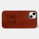 Personalize este elegante design de monograma de couros de vegan castanhos; criado com 3 camadas de tipografia em diferentes tons para simular o aspecto gravado. Um acessório profissional e prático para sua empresa ou telefone celular pessoal.