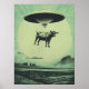 Cow Abduction Print Retro UFO Poster Alien Wall Ar