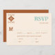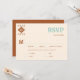 Um cowboy moderno, elegante país, carta de RSVP ocidental de casamento com um tema do sudoeste, deserto, apresentando um motif tribal desenhado à mão, estilizado, do sudoeste num estilo de arte expressivo. Uma escolha encantadora para um casamento ocidental, um casamento no celeiro do país, um casamento no deserto, um casamento de vaqueiro ou um casamento no rancho do país.