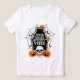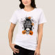 Thighs Spooky Vibes Halloween Tshirt apresenta o texto "Thick Thighs Spooky Vibes" na moderna tipografia escrita, destacada por abóboras, morcegos, teias aranhas e morcegos e personalizada com o seu nome personalizado. Perfeito para festas de Halloween. Projetado por feriados do Evco www.zazzle.com/store/evcoholidays