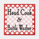 Cabeça Cozinha e Garrafa, cozinha engraçada. Humor Zistido na comida em letras retrorreflectoras em fundo de latência vermelha e branca para um olhar de vintage. Comida divertida e slogans de humor de cozinha para cozinheiros, por MomsRetro.com.