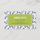 O cartão legal com beira, um teste padrão da repetição da cozinha do cozimento whisk ícones. No centro do cartão, um cozinheiro chefe pequeno whisk assentos do logotipo sobre o nome. Toda a rotulação é no branco sobre um fundo do verde prudente, com um jogo na tipografia. Cartão impresso em ambos os lados.
