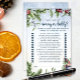 Está frio lá fora, mas nossos corações estão quentes com alegria. Moedas de água de design de inverno confortável, com modernas caligrafia, sagrada e bagas, chocolate quente ou cacau, marshmallows e cana-de-açúcar, galhos verdes em árvores de fundo nevado. O texto pode ser facilmente personalizado para um único design único para o seu dia especial.