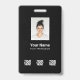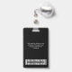 Personalize facilmente este Crachá de Nome de Funcionário Personalizado com Foto, Código de Barras e 3 Logotipos de Negócios Múltiplos. Você pode carregar 3 logotipos de empresas diferentes, perfeito para parcerias e patrocinadores. Um design de negócios simples em cores preto e branco totalmente personalizável na frente e nas costas, tamanhos, fontes básicas sans-serif e modernas e uma aparência profissional e clara. Disponível com cordão, clipe de metal ou retrátil. Sem pedido mínimo.