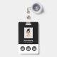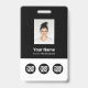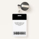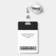 Personalize facilmente este Crachá de Nome de Funcionário Personalizado com Foto, Código de Bar de Digitalização e 3 Vários logotipos de negócios. Você pode carregar três logotipos diferentes de empresas, perfeitos para parcerias e patrocinadores. Um simples design de negócios em cores preto e branco totalmente personalizável em tamanhos frontais e traseiros, fontes básicas e modernas sans-serif e uma aparência profissional e clara. Disponível com jardim, clipe de metal ou com retratável. Sem ordem mínima.