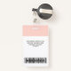 Personalize facilmente este Crachá cor-de-rosa cor-de-rosa de nome de funcionário personalizado com fotografia, código de Bar de digitalização e 3 logotipos de várias empresas. Você pode carregar três logotipos diferentes de empresas, perfeitos para parcerias e patrocinadores. Um design de negócios simples em rosas claro giras e cores brancas totalmente personalizáveis em tamanhos frontais e traseiros, fontes básicas e modernas sans-serif e uma aparência profissional e clara. Disponível com jardim, clipe de metal ou com retratável. Sem ordem mínima.