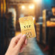 Um emblema moderno, elegante e glamoroso para uma festa de 40º aniversário. Um fundo metálico dourado com efeito de brilho falso, com aspecto de tinta pingando. O nome é escrito com uma fonte moderna de letra manual. Com o texto: VIP O número 40 é escrito com uma fonte de balão, em estilo script.