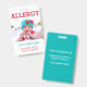 A foto feita sob encomenda caçoa o crachá de advertência alerta da alergia ICOE. Anexo através de uma correia, de um grampo do metal, ou de um grampo retrátil a um saco de livro, a um jogo da medicina ou para que uma criança vista-se. Personalize com suas alergias, informação do contato ou instruções da emergência. Adicione a foto da sua criança à parte dianteira. Edite para mudar cores da pia batismal e do fundo ou estilo ou tamanho do texto. A informação pode ser escrita na parte dianteira ou na parte traseira. Para pedidos feitos sob encomenda contacte-me em www.LilAllergyAdvocates.com