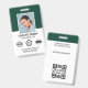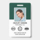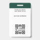 Crie uma aparência profissional com este crachá de identificação de na moda. Um modelo simples personalizado com sua foto de ID, nome, cargo, logotipo da empresa e símbolos de acreditação. Os detalhes de devolução estão no verso, juntamente com informações adicionais, e um código de barras ou código QR. Personalize o texto para se adequar à sua empresa. Ideal para muitos locais de trabalho diferentes, incluindo profissionais corporativos, consultores de negócios, varejistas, funcionarios médico e muito mais. Cores impressas: verde muito escuro, preto e branco.