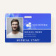 Crachá de funcionários do hospital ou do lar de enfermagem com abstrato em tons de azul. Adicione uma foto do funcionário junto com o nome e a profissão. Personalize ainda mais com o logotipo da sua empresa.