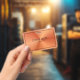Impressão de textura metálica brilhante, de aço inoxidável, com tipografia preta personalizável e estrutura simples. Design moderna elegante.