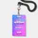 Néon de tendência brilha no escuro azul-claro, névoa vibrante e colorido Doce, 16 festas em convite com o crachá de acesso de passagem VIP.