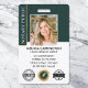 Crie uma aparência profissional com este crachá de ID público notário. Um design de na moda com caneta de pena e símbolo em forma de selo. Este modelo é personalizado com sua foto de ID, seu nome, informações e um código QR. Incluir dois símbolos de acreditação (ou três substituindo o símbolo notarial). Perfeito para um Notário Público, Agente de Assinatura de Empréstimo, Agente de Entrega de Confiança Notária Certificada, CNTDA, Notário Móvel, Apostille ou outra profissão jurídica. Cores impressas: preto Floresta negra verde, preto, branco e dourado. Compre a coleção on-line para obter ideias e suprimentos de produtos mais populares, projetados para notários!