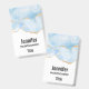Um nome de etiqueta com um belo design azul-gelo com sotaques dourados falsos.