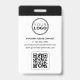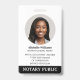 Faça uma impressão profissional com este na moda e o crachá moderno de identificação. Um modelo de dois lados mostrando sua foto de identificação dentro de um quadro circular e personalizado com seu nome, detalhes comerciais, logotipo e um código QR digitalizável. Personalize o texto para se adequar à sua empresa. Perfeito para um Notário Público, Agente de Assinatura de Empréstimo, Agente de Entrega de Confiança Notária Certificada, CNTDA, Notário Móvel, Apostille, profissional legal ou outro funcionário de negócios. Design cores impressas: preto, branco e cinza. Compre a coleção on-line para obter ideias e suprimentos de produtos mais populares, projetados para notários!