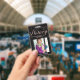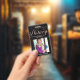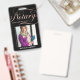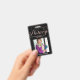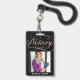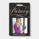 Crachá de negócios elegante e moderno para agente assinante de empréstimo notário com script de caligrafia manuscrito em falso foil rosa dourado ''notary'' em um fundo preto. Personalize com seus detalhes.