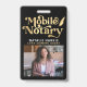 Crachá de negócios elegante e moderno para o agente de assinatura de empréstimos para notários móveis que apresenta o falso roteiro de caligrafia manuscrita em falso foil gold em um plano de fundo preto. Personalize com seus detalhes.