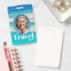 Melhore sua aparência profissional com este Crachá de ID de agente de Viagem com um tema impressionante de oceano azul e praia. Ideal para funcionários, este nome de etiqueta personalizável inclui um modelo de foto e um design de modelo QR, perfeito para agências viagem ou profissionais de turismo