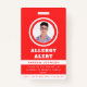 Mantenha-se seguro com este crachá vermelho de alerta de alergia à comida, com fotos e texto personalizados para estudantes. Adicione facilmente seus próprios detalhes clicando na opção "personalizar este modelo".