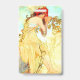 Crachá com o painel litográfico de Alphonse Mucha Verão (1896). A ideia do verão é representada por uma bela mulher cortada em flores vermelhas relaxando em uma cena pacífica. Um presente de excelente para fãs de Arte Nouveau e de Arte Checa.