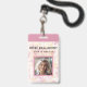Moderno e na moda, adicione sua foto, crachá com fundo de aquarela com cinzas dinâmicas, placas e gotas em rosa, rosa-pincelado e amarelo. Personalize seu nome, título e foto. Este crachá garante que você faça uma impressão contemporânea e impactante. Explore outros produtos com o mesmo design de aquarela moderno para completar sua aparência profissional.