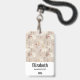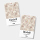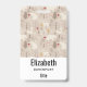 Crachá de nome personalizado com um padrão fofo em estilo nórdico. Árvores de pinheiro de inverno, ursos, renas e esquilos. Cor marrom claro.