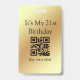 Aniversário de 21 anos, compre-me um drinque, código qr, emblema metálico dourado