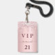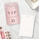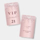 Um crachá moderno, na moda e glamouroso para uma festa de aniversário 21 (ou qualquer idade). Um fundo de gradiente cor-de-rosa pincelado com pingar brilhante falso, aparência de pingar tinta. Com o texto: VIP. Personalize e adicione um nome, idade, detalhes da festa no verso. O nome é escrito com um moderno estilo escrito à mão com traços. Para manter as hastes, exclua apenas o nome da amostra, deixe os espaços ou emoji na frente e depois do nome.