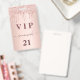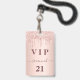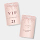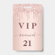 Um crachá moderno, na moda e glamouroso para uma festa de aniversário 21 (ou qualquer idade). Um fundo metálico rosa dourado falso com um brilho elegante rosa dourado, pintura gota-a-gota. O nome é escrito com um moderno e escuro, rosa dourado, escrito em estilo manuscrito, com traços. Com o texto: O número VIP 21 é gravado a uma cor de ouro. Para manter as hastes, exclua apenas o nome da amostra, deixe os espaços ou emoji na frente e depois do nome.