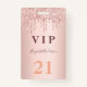 Um crachá moderno, na moda e glamouroso para uma festa de aniversário 21 (ou qualquer idade). Um fundo rosa dourado com um aspecto pingado de tinta. O nome é escrito com um moderno e escuro, rosa dourado, escrito com letra de estilo manuscrito. Com o texto: O número VIP 21 é gravado a uma cor de ouro.