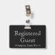 Este crachá de design antiquado apresenta a mensagem "Convidado Registrado" e um nome personalizável da empresa ou outra mensagem personalizada. Um crachá como este poderia talvez ser usado para indicar que uma pessoa é um convidado ou visitante conhecido e autorizado numa empresa ou no local de trabalho. [~Z0000307]