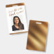 Use os campos do modelo para substituir a foto do marcador por uma sua. Eu adicionei um campo de imagem que mostra as palavras "here's the smile behind my mask" (aqui está o sorriso por trás da minha máscara) em uma fonte de letra manuscrita casual. As palavras foram embelezadas com um acabamento metálico dourado. O mesmo dourado foi adicionado na parte superior e inferior, e no verso do distintivo. Se você está escolhendo usar uma cobertura facial para manter os membros da sua comunidade seguros, aqui está uma maneira amigável de se conectar com aqueles que você encontra quando precisa sair. Você está acostumado(a) com as pessoas conseguindo ver seu sorriso... agora elas podem ver! Não é perfeito, mas vai servir até que as coisas voltem a uma normalidade mais familiar.