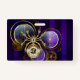 Aranha-do-galo feita de ouro e aço com relógios antigos decorados com engrenagens de ouro sobre fundo roxo, listrado, texturizado com lentes e engrenagens de latão. Estilo Steampunk.