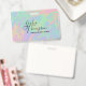 Ilustração holográfica profissional minimalista abstrato em tons pastéis de arco-íris; seu nome e texto escrito com o roteiro de caligrafia tipográfica de tendências.