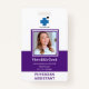 Este crachá de identificação de segurança roxo moderno apresenta o seu nome, função, título e fotografia. Projetado para funcionários de hospitais e centros médicos. No mockup, design é roxo, mas você pode mudar facilmente as cores.
