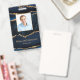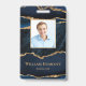 Este crachá de identificação moderno e elegante apresenta azul-marinho e ágata dourada com uma borda dourada em torno da sua foto personalizada, e seu nome e cargo na parte inferior. Perfeito para imobiliárias, notários, planejadores de eventos, cabeleireiros, artistas de maquiagem e profissionais de negócios que desejam um visual moderno e glamoroso.