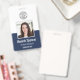 Personalize esses crachás verticais com uma foto e um nome de funcionário, juntamente com duas linhas de texto personalizado adicional para o número de ID do funcionário, função ou título, local ou outros dados-chave. Adicione seu logotipo no topo. Campo de texto personalizado adicional localizado no verso para informações de retorno ou outros detalhes.
